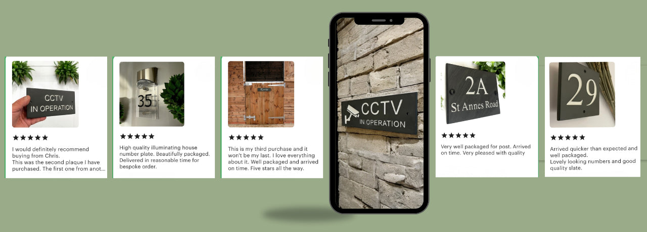 HouseSign.co.uk is a manufacturer of Natural Slate, Granite, Acrylic and Stone House Signs. These are made to any size and design. If you are not familiar with our company and your first contact with us is online: We would be pleased to hear from you! Please let us know what your needs and questions are, and we will be more than happy to help.